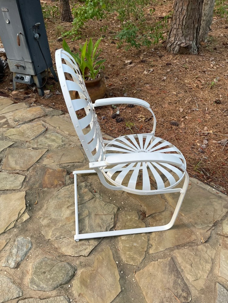 Description: The ultimate in style and comfort! This fully restored chair offers the opportunity to experience the ‘feel’ of these iconic chairs as if they had just left the factory for the first time! The restoration process includes replacing every spring, stiffener and rivet throughout the chair.. This is all done while preserving and using the foundation components of the chair. Accordingly, there will be indications present of the actual age of the chair (i.e. some pitting of legacy parts). The process is competed by finishing with a high-quality powder coat finish.. Overall dimensions are 26″ wide x 28″ deep x 43″ tall.